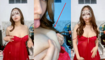Pesona Kakak Cantik Daster Merah Bermain Pentil di Dapur